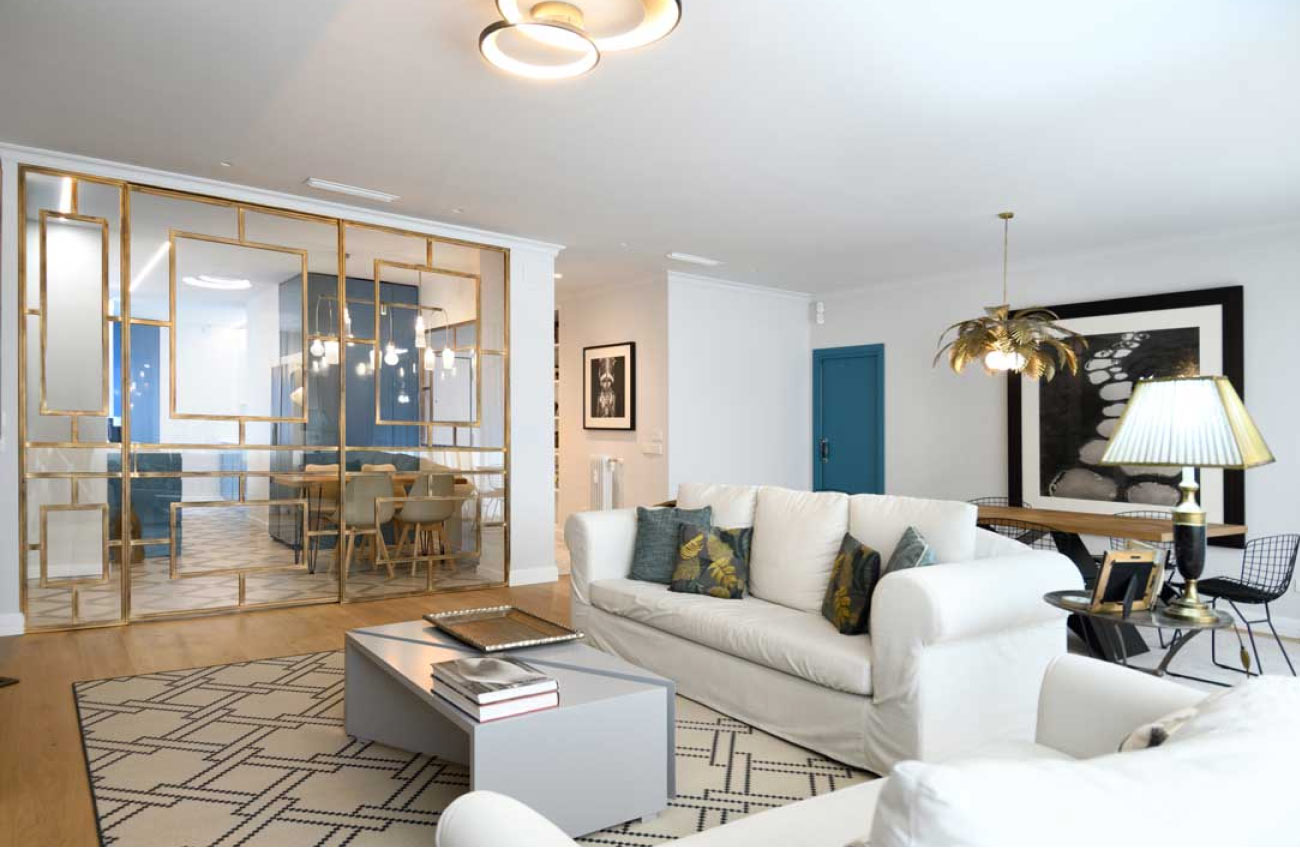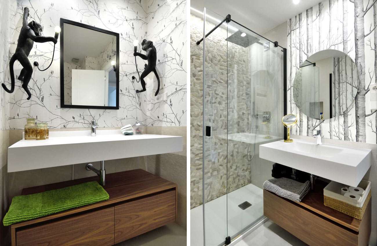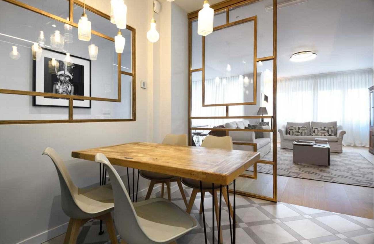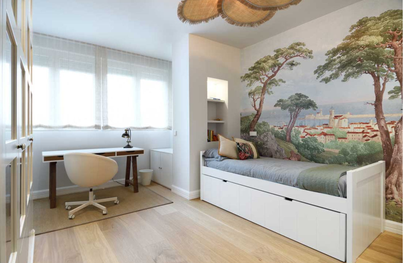Diseñamos un mueble en madera chapada de nogal, contrastando con la encimera blanca. Consta de dos amplios cajones, aportando funcionalidad y estética a la estancia.